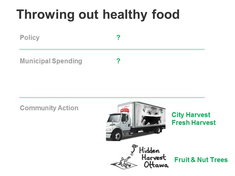 I’m here to tell you that many citizens of our City are beginning to disagree. Taking what was once healthy, nutritious food and allowing it to rot in city parks and greenbins is only slightly better than letting it rot in a landfill. Especially when more than 50,000 people are relying on our foodbanks each and every month.