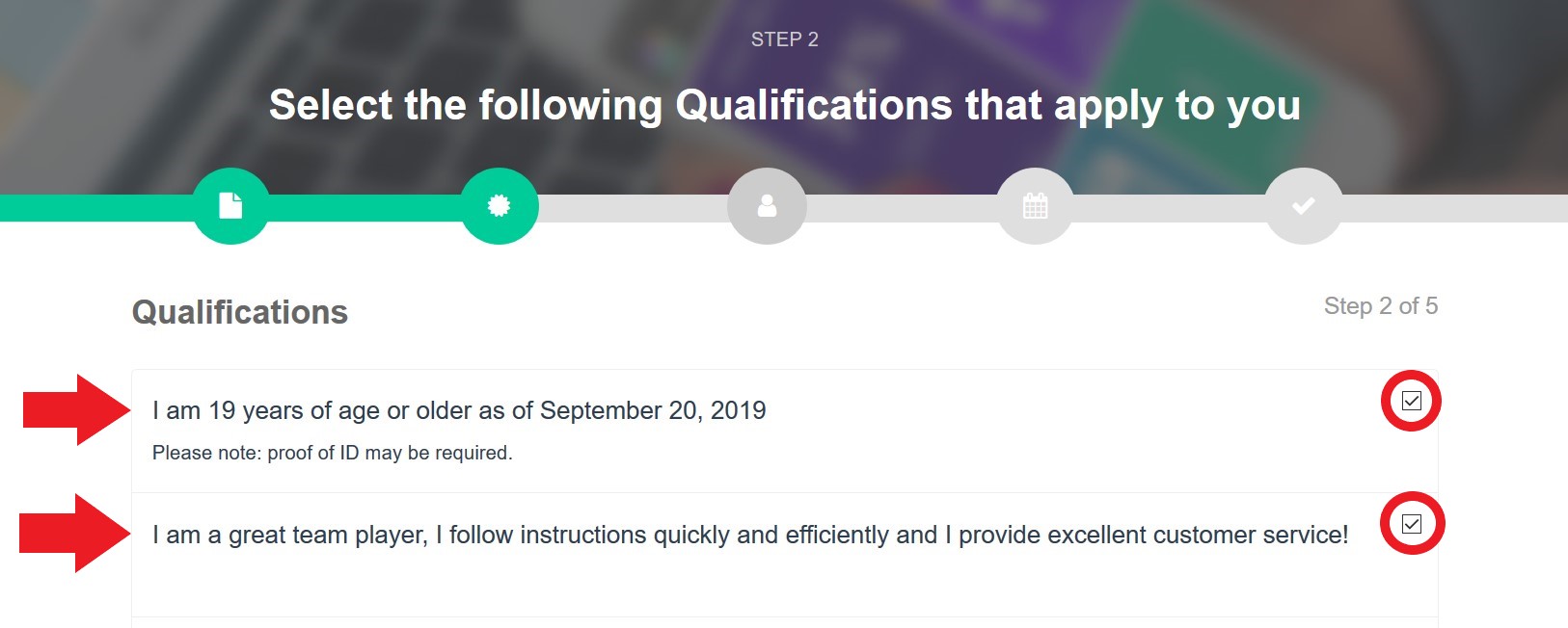 have to check off the first 2 boxes – that you are 19+ as of September 21, 2019 and