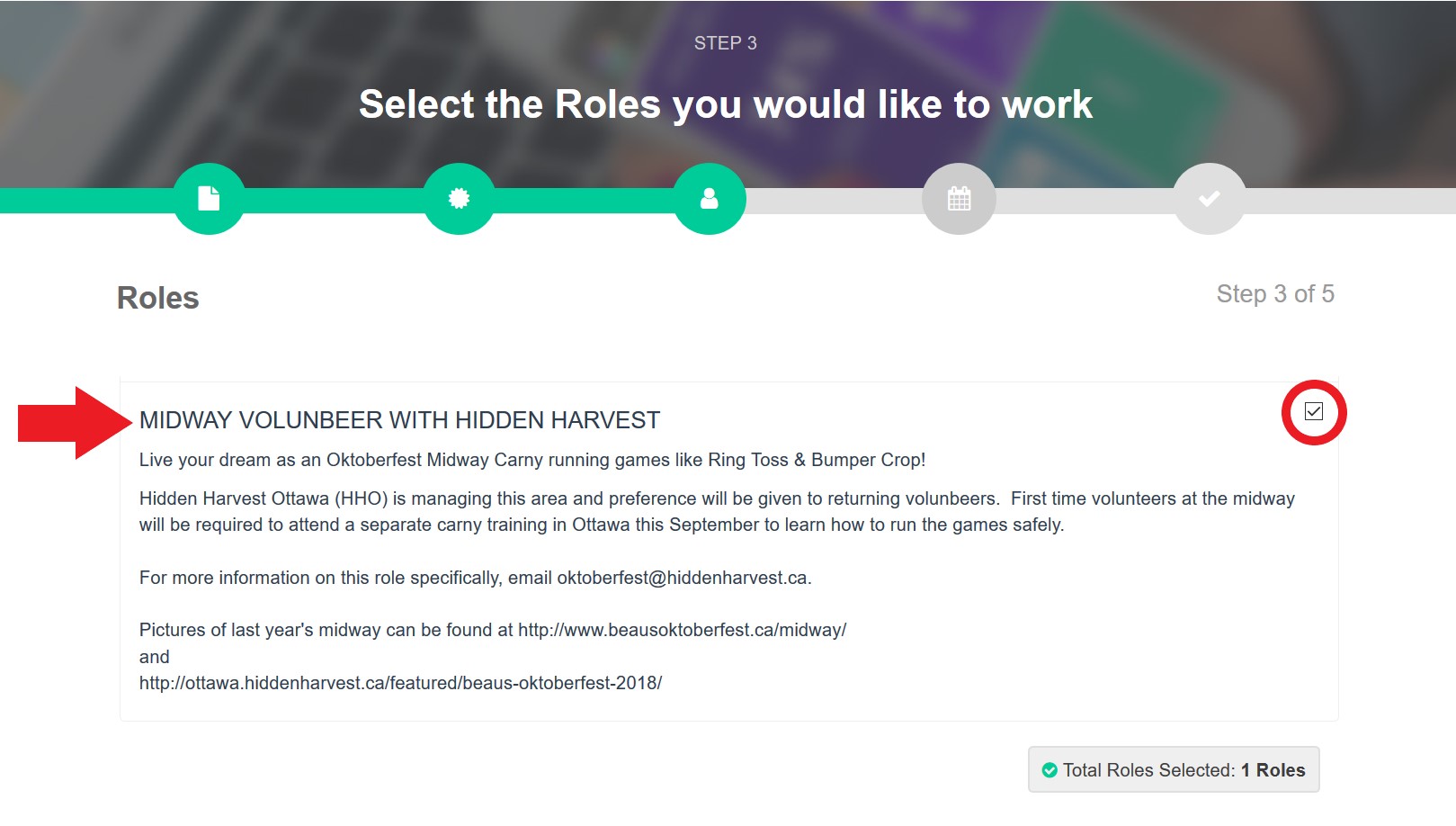 Select the roles you would like to work! You are welcome to choose any roles that interest you, but don’t forget to scroll down and check off MIDWAY VOLUNBEER WITH HIDDEN HARVEST! (definitely the most fun role!)